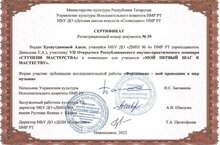 Хуснутдинова Аделя (преподаватель Давыдова Елена Александровна) приняла участие в номинации для обучающихся "Мой первый шаг к мастерству" с публикацией исследовательской работы "Фортепиано - мой проводник в мир музыки" -