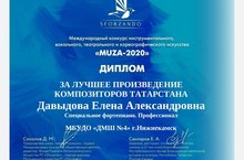 Международный конкурс инструментального, вокального, театрального и хореографического искусства "MUZA - 2020" номинация "Лучшее произведение композиторов Татарстана. Профессионал." 12.04.2020