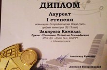 2 декабря 2019 года, в г.Казань, прошел Всероссийский детский фестиваль "Нотная симфония", где Закирова Камилла приняла участие и стала Лауреатом I степени в номинации "Эстрадный вокал. Вокал.Соло." (преподаватель Шигапова Н.Г.).