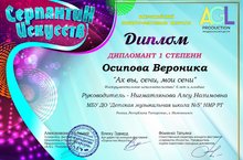 17 апреля, учащаяся фортепианного отдела "Детской музыкальной школы №5" Осипова Вероника (кл.преп-ля Нигматзяновой А.Н) отлично выступила и стала Дипломантом I степени во Всероссийском фестивале-конкурсе "Серпантин искусств" г.Севастополь.