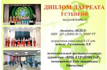 25 апреля, ансамбль кураистов "Идель" (кл.преп-ля Гильмановой Л. Р) отлично выступили и стали Лауреатами I степени в Муниципальном фестивале- конкурсе кураистов "Яшь курайчылар".