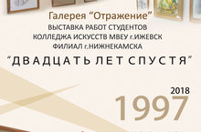 В галерее «Отражение» МАУ ДО «ДХШ №1» НМР РТ прошло открытие выставки учебных и экзаменационных работ студентов колледжа искусств МВЕУ г. Ижевска, нижнекамского филиала. Выставка "Двадцать лет спустя" включает в себя свыше 70 работ по рисунку, живописи, дизайну, макетированию и компьютерной графике. Выставка будет интересна всем, кто интересуется искусством. Экспозицию можно будет посмотреть до конца января 2019 года. 24.12.2018