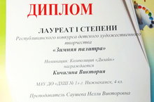 В новый год с новыми победами! Учащиеся МАУ ДО "ДХШ 1"НМР РТ приняли участие в очном Республиканском конкурсе детского художественного творчества "Зимняя палитра". Конкурс проходит ежегодно в Казанском художественном училище. Ученица 4 - го класса Кичигина Виктория преподавателя Саушевой Н. В. стала лауреатом 1 степени в номинации: Композиция "Дизайн"! Поздравляем победителя! 12.01.2019