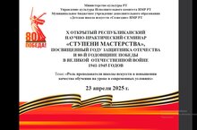 23 апреля в МБУ ДО «Детская школа искусств «Созвездие» НМР РТ прошел X Открытый Республиканский научно-практический семинар «СТУПЕНИ МАСТЕРСТВА», посвященный Году защитника Отечества и 80-й годовщине Победы в Великой Отечественной войне 1941–1945 годов, тема: «Роль преподавателя школы искусств в повышении качества обучения на уроке в современных условиях».