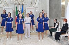 Воспитанники преподавателя Круподёровой Е.Е. - вокальный ансамбль "Веснушки" и Мустафин Дамир приняли участие в торжественном мероприятии ЗАГСа - торжественном вручении паспортов девочкам, приуроченное Международному женскому дню.