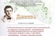 20 марта юные гитаристы ДШИ «Созвездие» стали лауреатами VI Республиканского конкурса юных исполнителей на народных инструментах, посвященный 55-летию Нижнекамского музыкального колледжа имени Салиха Сайдашева.