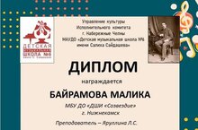 Шаранихина Алия - Лауреат III степени (преп. Газизуллина Э.Ф.);