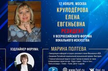 В Москве в начале ноября проходил Большой V Юбилейный Всероссийский форум вокального искусства в рамках Года педагога и наставника. Преподаватель вокала ДШИ "Созвездие" Круподёрова Е.Е. в рамках форума прослушала и стала участником (резидентом) курса мастер-классов секретов вокального исполнительства.