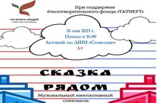 26 мая 2023 года в 16.00 в актовом зале ДШИ "Созвездие" стартует серия показов уникального инклюзивного музыкального спектакля "Сказка рядом", создание и представления которого состоятся при поддержке Благотворительного Фонда "TATNEFT", так как данный проект стал победителем Грантового конкурса ПАО «Татнефть».
