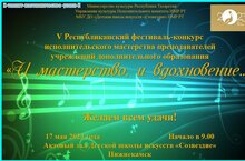 17 мая своих участников встретит V Республиканский фестиваль-конкурс исполнительского мастерства преподавателей учреждений дополнительного образования «И мастерство, и вдохновение…».