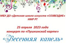 25 апреля в зале ДШИ "Созвездие" состоится очередной концерт по Пушкинской карте "Весенняя капель" с участием преподавателей-солистов и педагогических коллективов школы.