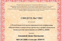 20 декабря в г.Казань состоялась Республиканская научно-практическая конференция «Перспективы и актуальные проблемы в профессиональной деятельности преподавателей ДМШ и ДШИ». Преподаватели разных отделов ДШИ "Созвездие"- теоретического, вокально-хорового, фортепианного - приняли активное участие в мероприятии, организованном при поддержке Федерального государственного бюджетного образовательного учреждения высшего образования «Казанский государственный институт культуры», МБУДО «Детская музыкальная школа №20» Приволжского района г.Казани, Городского методического объединения преподавателей музыкально-теоретических дисциплин ДМШ и ДШИ Управления образования г.Казани.