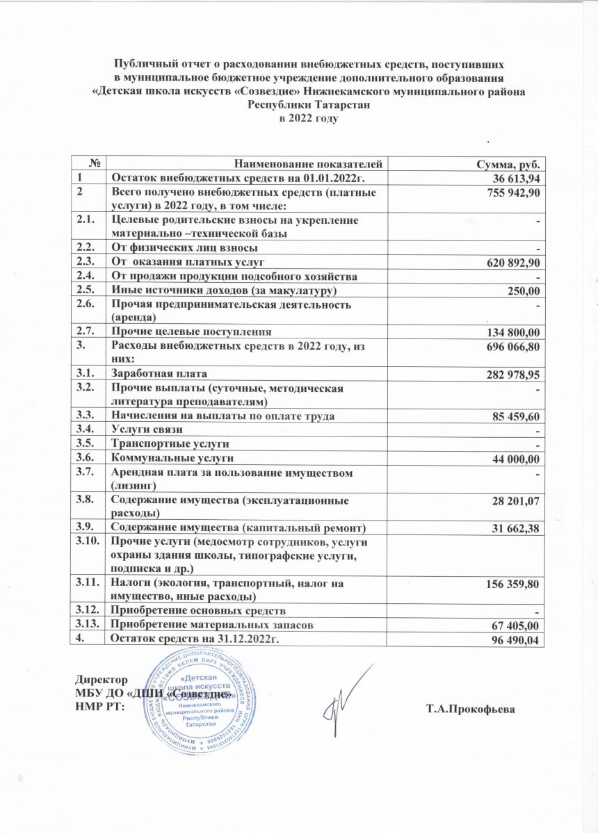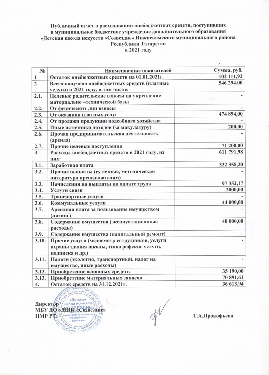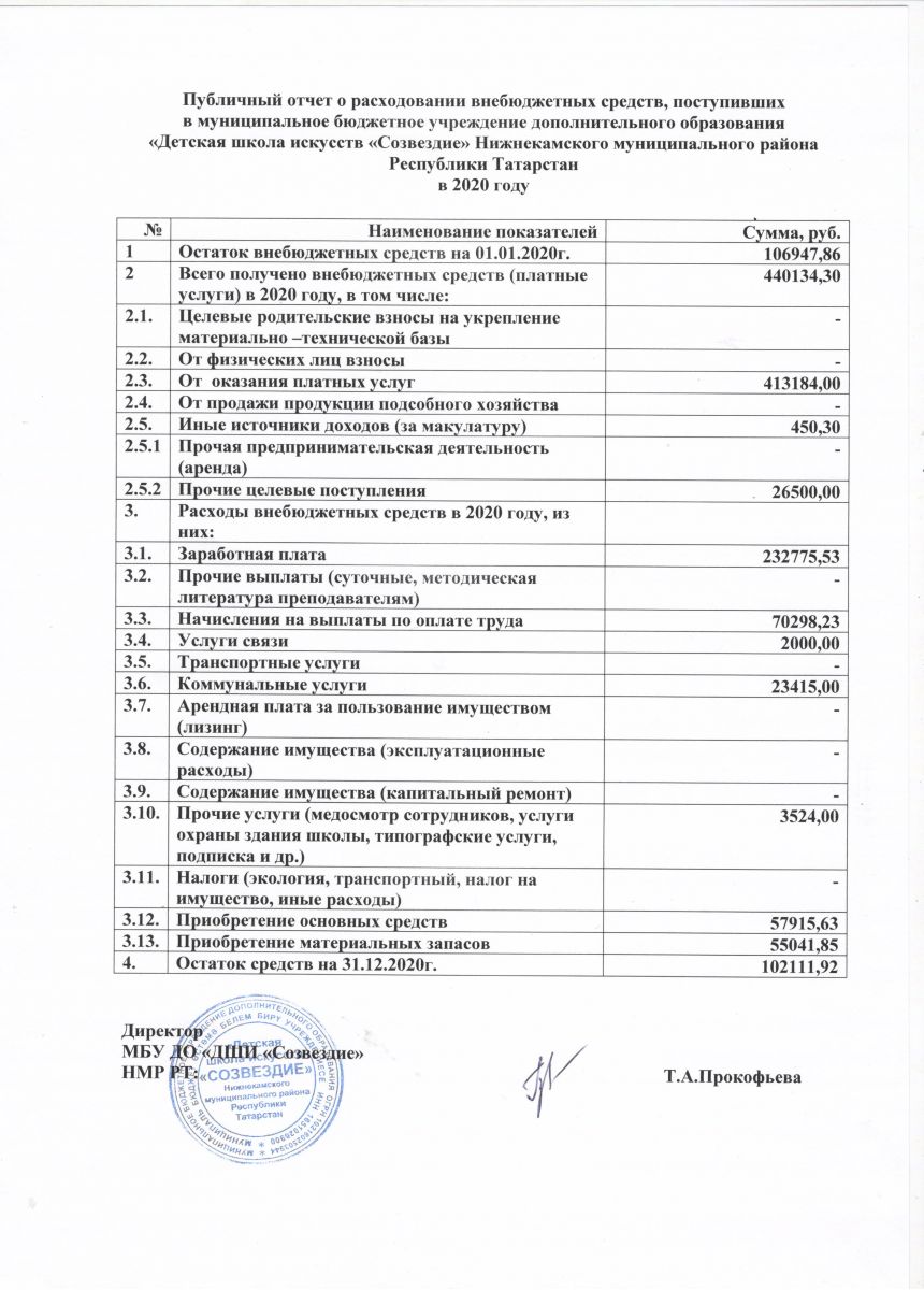 Отчет о расходовании внебюджетных средств (2020 год)