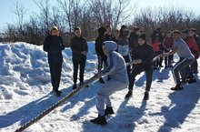 А потом студентов ждал неожиданный конкурс - метание валенка на 10 метров!