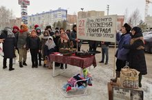 На открытой площадке возле торгового центра «Сити Молл» студенты агропромышленного колледжа организовали живую инсталляцию. Символом акции стал кусочек черного хлеба весом 125 г – такая минимальная норма была установлена в блокадном Ленинграде.