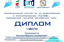 Команда студентов ГАПОУ «Нижнекамский агропромышленный колледж» приняла участие в Республиканском конкурсе по 3D моделированию и прототипированию «Гво3Dь», посвященный 100-летию образованию ТАССР.