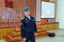 Рамиль рассказал ребятам про испытания, которые выпали на его долю, про обучение и спецпредметы, которым их учат, о своих сослуживцах, командовании, распорядке дня и условиях приёма. На его счету уже 5 прыжков с парашютом. Нашим студентам он рекомендовал поступать в училище и напомнил крылатые слова из к/ф "Офицеры": «Есть такая профессия - Родину защищать!»
