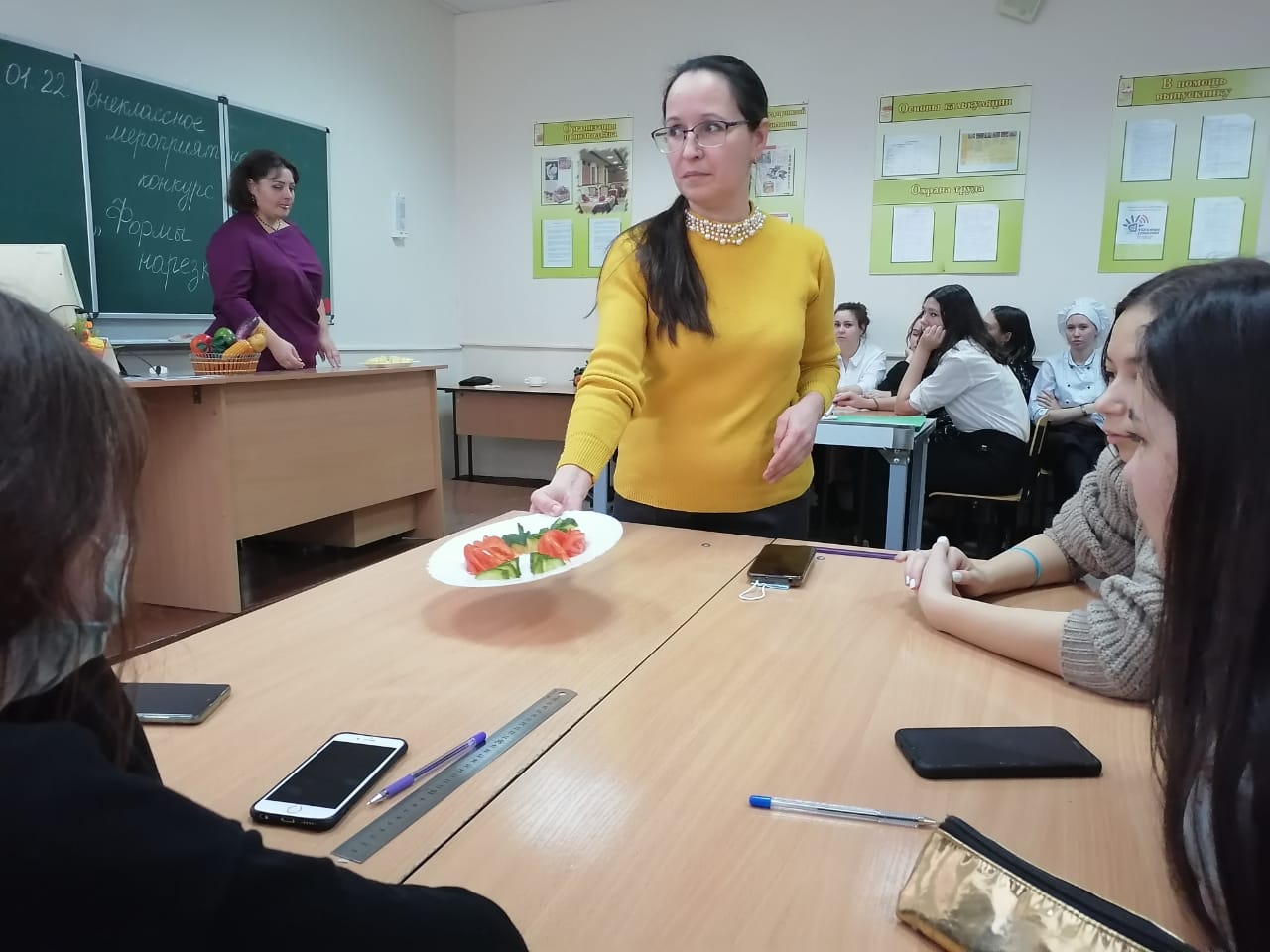 Опубликовано: 28.01.2022В рамках профессиональной декады группы технологов 12 и 13 участвовали в конкурсе профмастерства, где определился победитель-лучший по нарезке овощей Азиз Валеев. Так же ребята познакомились со сложными формами нарезки. Были продемонстрированы приёмы по изготовлению украшений из овощей и фруктов.