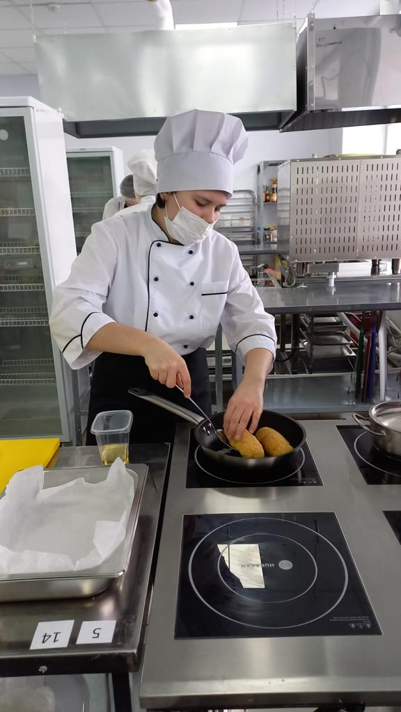 Студенты Нуртдинова Алия, Сабирова Айза, Бушенева Анастасия, представляющие наш колледж под руководством преподавателей Гафур И.В. и Ерашовой М.Н., показали высокий уровень теоретических знаний и практических навыков в соответствии с требованиями демонстрационного экзамена по компетенции Поварское дело. Сабирова Айза и Бушенева Анастасия выполняли практическую часть 2-го тура конкурса, готовили 3 порции горячего блюда из птицы, с двумя гарнирами, соусом. В конце работы они представили на суд жюри красиво и эстетично оформленное блюдо, получившее самую высокую оценку.