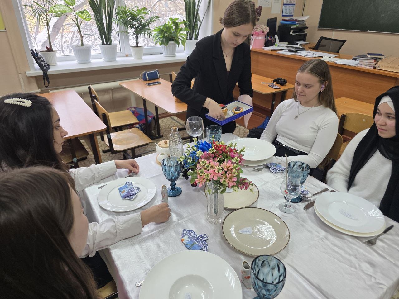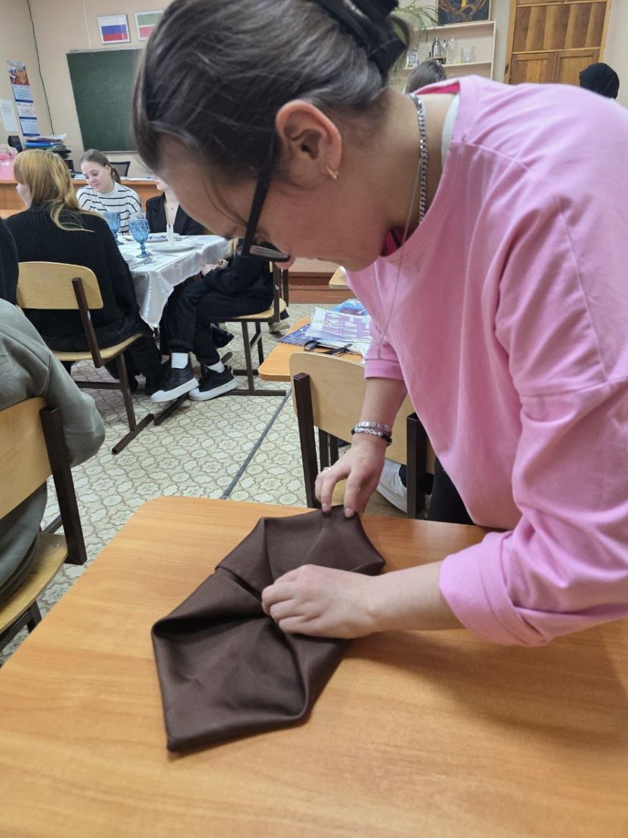 Занятие началось с отработки базовых навыков: правильной сервировки стола, этикета общения с гостями и изящного складывания салфеток. Однако кульминацией стал мастер-класс по уникальному способу подачи чая — «чай с пах-пахом».