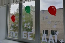 Студенты Нижнекамского индустриального техникума присоединились к всероссийской акции «Окна Победы», украсили окна учебного здания.