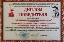 ХIII Республиканская научно-практическая конференция имени Мусы Джалиля в номинации «Лучшая научно- исследовательская статья» 17.03.2025