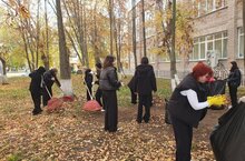 Сегодня обучающиеся Нижнекамского индустриального техникума убирали листья на прилегающей к техникуму территории.