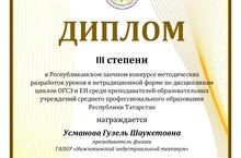 Республиканский заочный конкурс методических разработок уроков в нетрадиционной форме по дисциплинам циклов ОГСЭ и ЕН среди преподавателей образовательных учреждений среднего профессионального образования РТ 22.12.2022