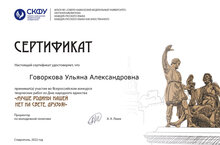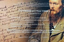 Студентка группы № 447 Говоркова Ульяна приняла участие в Республиканском конкурсе сочинений «Писатель на все времена» среди студентов 1-3 курсов ПОО Республики Татарстан, посвященного 200-летию со дня рождения Ф.М. Достоевского. В конкурсе, который проходил на базе ГАПОУ «Лениногорский музыкально-художественный педагогический колледж», приняли участие 50 учебных заведений.