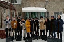Городской зимний субботник. Волонтеры техникума приняли активное участие в помоши Детскому центру медицинской реабилитации по уборке снега.