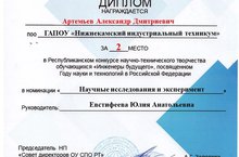 Студент группы № 427 Артемьев Александр занял 2 место в республиканском конкурсе научно-технического творчества обучающихся «Инженеры будущего», посвященном Году науки и технологии в Российской Федерации (Научный руководитель: Евстифеева Ю.А.). Поздравляем с победой!