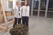 Так называемая "Мастерская" находится в фойе первого этажа учебного корпуса. Работает с утра до позднего вечера. Как только у студентов появляется свободное время, они приходят сюда, чтобы сделать как можно скорее очередную сетку. Лоскутки режутся под определённым углом и надёжно фиксируются.