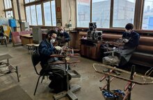 Группа 215 на учебной практике в мастерских колледжа.