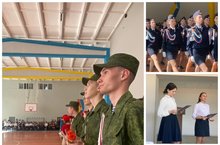 На торжественном открытии приняли участие победители смотра-конкурса строя и песни Нижнекамского муниципального района Республики Татарстан: