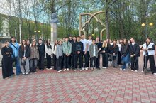 ????Группа 442 с преподавателем родного языка и литературы Саетгараевой Чулпан Данфировной приняли участие в празднике поэзии, который состоялся в сквере имени Г.Тукая. -