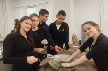Студенты первого курса 243 т специальность Производство неметаллических изделий и конструкций начали осваивать технику плетения сетей.