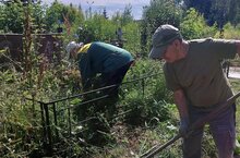 Сегодня убирали аллею Ветеранов на городском кладбище. "Трава выше меня ростом". Все заросло, надо убираться.