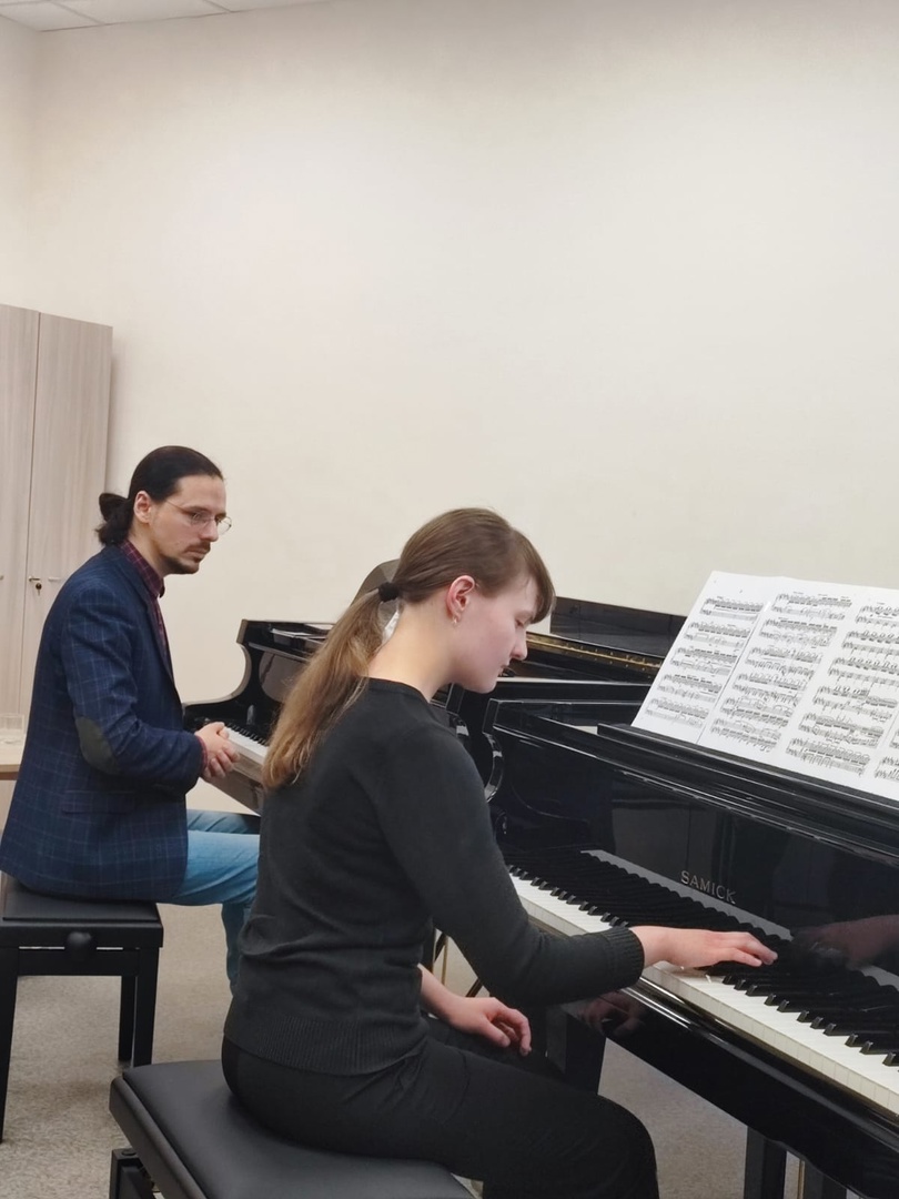 Опубликовано: 19.10.2023Сегодня студенты фортепианного отделения Нижнекамского музыкального колледжа - Закирова Камилла (II курс), Романова Аделя (II курс), Алишева Эльвина (III курс), Махиянов Нурислам (III курс) и Емашова Айгуль (IV курс) приняли активное участие в мастер-классе пианиста, преподавателя Казанской государственной консерватории имени Н. Г. Жиганова Малюты Даниила Глебовича.