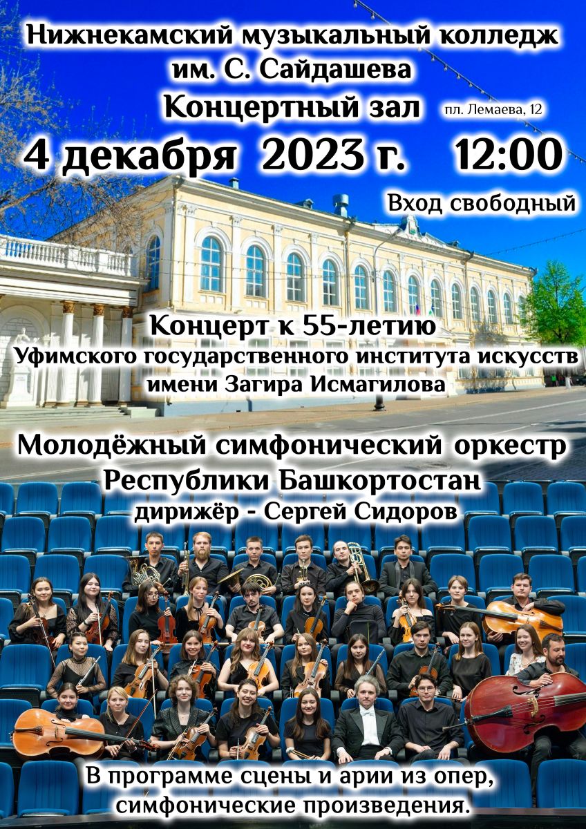 4 декабря мы ожидаем гостей - молодежный симфонический оркестр Республики Башкортостан с концертом, посвященному 55-летию Уфимского государственного института искусств имени Загира Исмагилова.