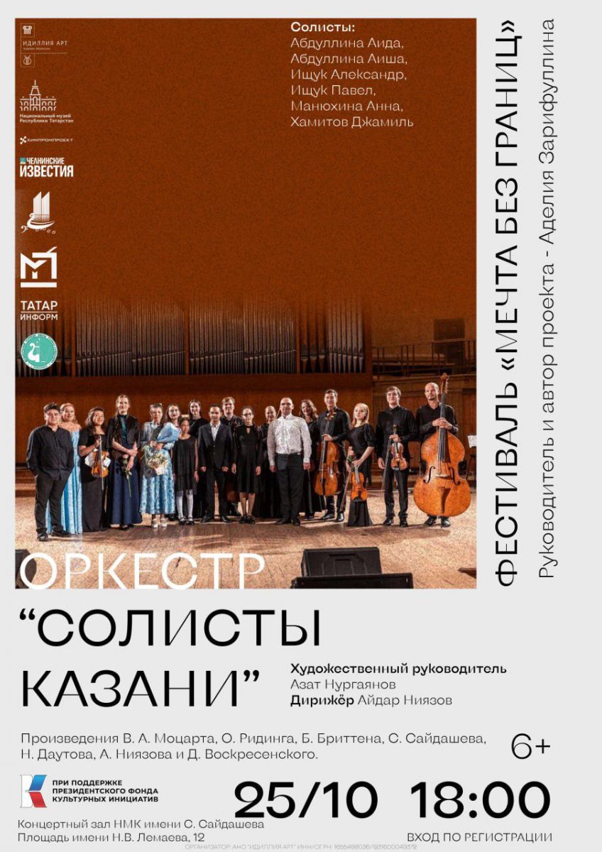 Юные таланты выступят вместе с оркестром "Солисты Казани", дирижеры — Айдар Ниязов и Азат Нургаянов.