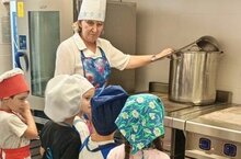 С целью ознакомления с профессией повара воспитанники подготовительных групп посетили кухню детского сада, где наблюдали за процессом приготовления пищи.