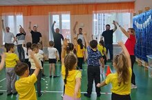 Вместе с папами дети выполняли разминку, участвовали в весёлых спортивных конкурсах. Воспитанники показали ловкость, быстроту, смекалку, силу, как у своих пап. Обстановка на празднике была очень дружелюбная и веселая.