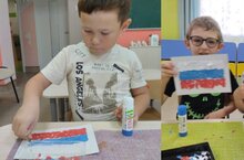В завершении беседы дети выполнили флаг в технике обрывной аппликации. -