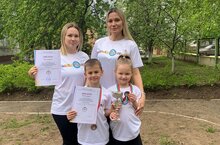 По итогам соревнований наша команда в составе инструктора по физической культуре Соколовой Д.С., воспитателя 8 группы Ахметшиной З.И. и детей подготовительной #8 группы Филипповой Евы и Кириллова Марка была награждена дипломом