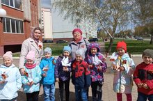 Приближается великий праздник - День Победы . Этот день бережно и трепетно передается из поколения в поколение. В предверии знаменательной даты дети старших и подготовительных групп приняли участие в акции "Мы помним". Бутоньерки "Голуби мира с георгиевской лентой", выполненные своими руками, воспитанники нашего сада со словами благодарности за счастливое детство, за мир раздавали прохожим бабушкам и дедушкам.