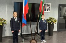 16 января в МБОУ "Адымнар-Нижнекамск" прошла церемония поднятия флагов с исполнением гимнов России и Татарстана. Право вынести флаг было предоставлено ученикам 6 В класса Тюрину Вячеславу – занявшему III место в первенстве Республики Татарстан по вольной борьбе и ученику 3В класса Цветкову – Лутай Андрею – победителю турнира «Академии «Барс» по ОФП. -