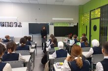 Инициатив төркем әгъзасы Е.Н.Төхвәтуллина 6-7 сыйныф укучылары өчен электрон сигаретларның зыяны турында лекцияләр үткәрде.