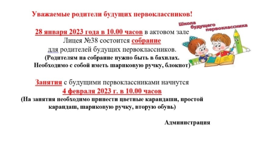 Собрание для родителей будущих первоклассников