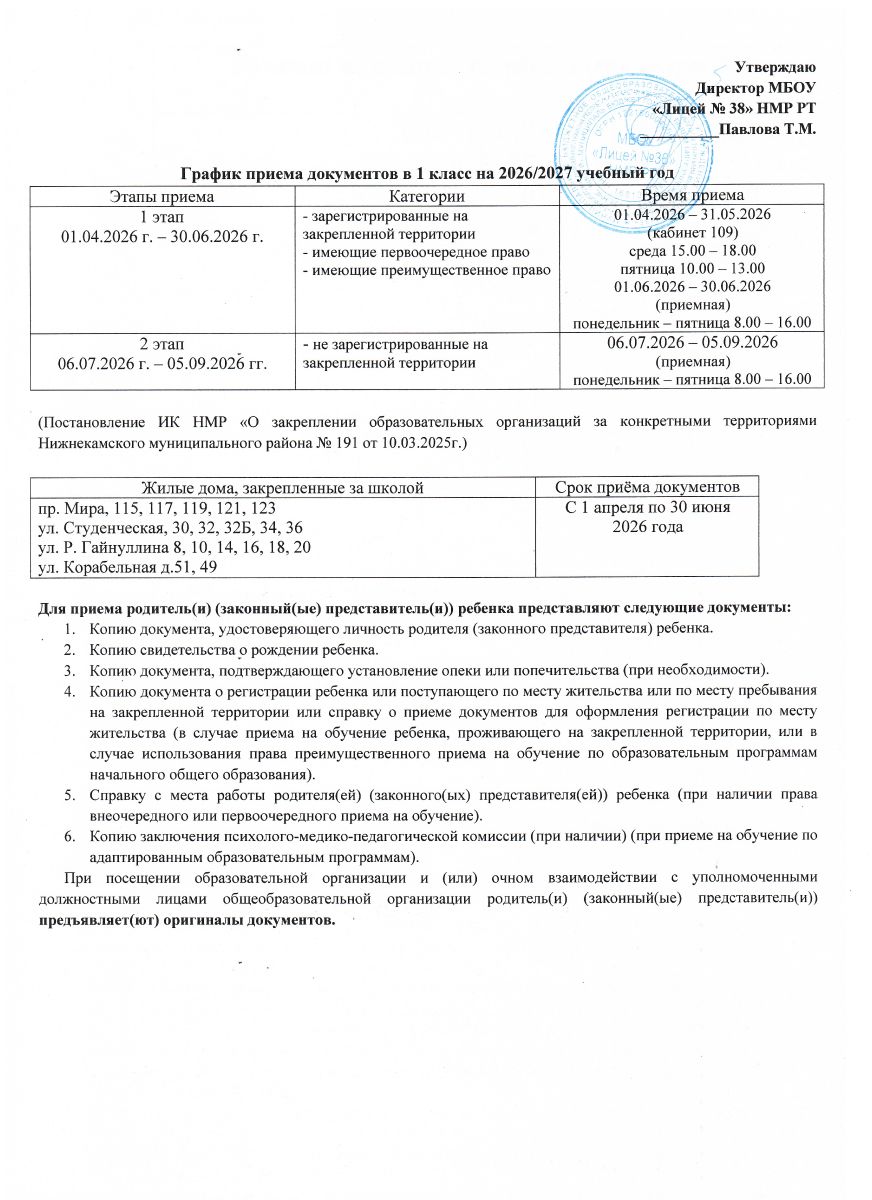 Заявление о приеме в МБОУ Лицей №38 НМР РТ