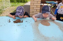 А сегодня ребята исследовали свойства сухого и влажного песка.Узнали о том, что сухой песок сыпучий, хорошо сыплется, а вот что – то слепить из сухого песка не получится – все постройки рассыпаются, его надо смочить.